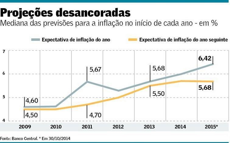 Com as projeções para o IPCA sistematicamente em patamar relativamente elevado, as expectativas, em cada começo de ano, são de que o BC aumente os juros em algum momento. Isso acaba desestimulando os investimentos produtivos e aumentando o grau de conservadorismo dos empreendedores.
