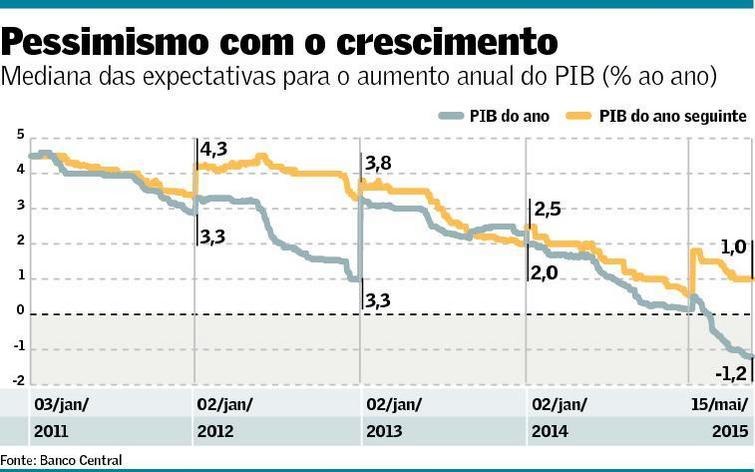 O ponto preocupante é que, sistematicamente, as projeções para crescimento econômico estão sendo revistas para baixo. Hoje os especialistas esperam contração de 1% no PIB em 2015 e crescimento de 1% em 2016. As projeções são um reflexo da dificuldade do governo em implantar uma política econômica consistente com o crescimento de longo prazo.