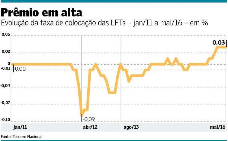 Já a LFT com vencimento em 2017 tinha, no começo do ano, taxa de compra de 0% e venda de 0,02%. Agora, a taxa de compra continua em 0%, mas a taxa de venda recuou para 0,01%. A redução da diferença entre as taxas explica a maior rentabilidade do papel curto em relação ao longo.