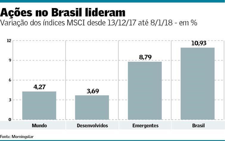 As bolsas mundiais tiveram desempenho diverso. As ações negociadas nos países desenvolvidos subiram 1,23% em média, conforme o índice MSCI World. Já a cotação das companhias negociadas nos países emergentes caiu 3,60% em dólares, de acordo com o indicador MSCI EM.