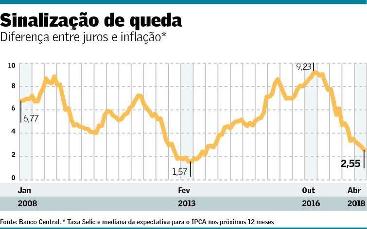 Desde outubro de 2016, as sucessivas reuniões do comitê de política monetária (Copom) tem decidido pelo corte da taxa básica de juros. Como consequência, a diferença entre a taxa Selic e a expectativa de inflação para os próximos 12 meses está hoje no menor patamar dos últimos cinco anos.