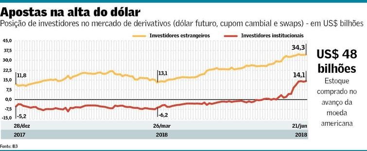 Entretanto, conforme apurou Lucas Hirata, do Valor, a causa da alta do câmbio parece ter sido o incremento das apostas de investidores estrangeiros e fundos de investimento locais no mercado de derivativos. Parte dessa demanda, estimada em US$ 48 bilhões, foi suprida pelo Banco Central, detentor de reservas internacionais no montante de US$ 382 bilhões.