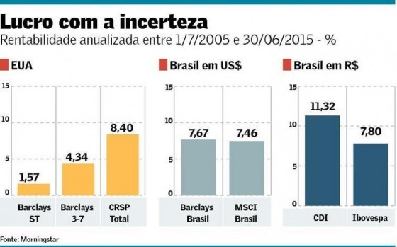 Em contrapartida, essa característica aproxima o comportamento dos títulos de renda fixa de longo prazo à trajetória do rendimento das ações. E justifica a comparação direta das duas modalidades de investimento.